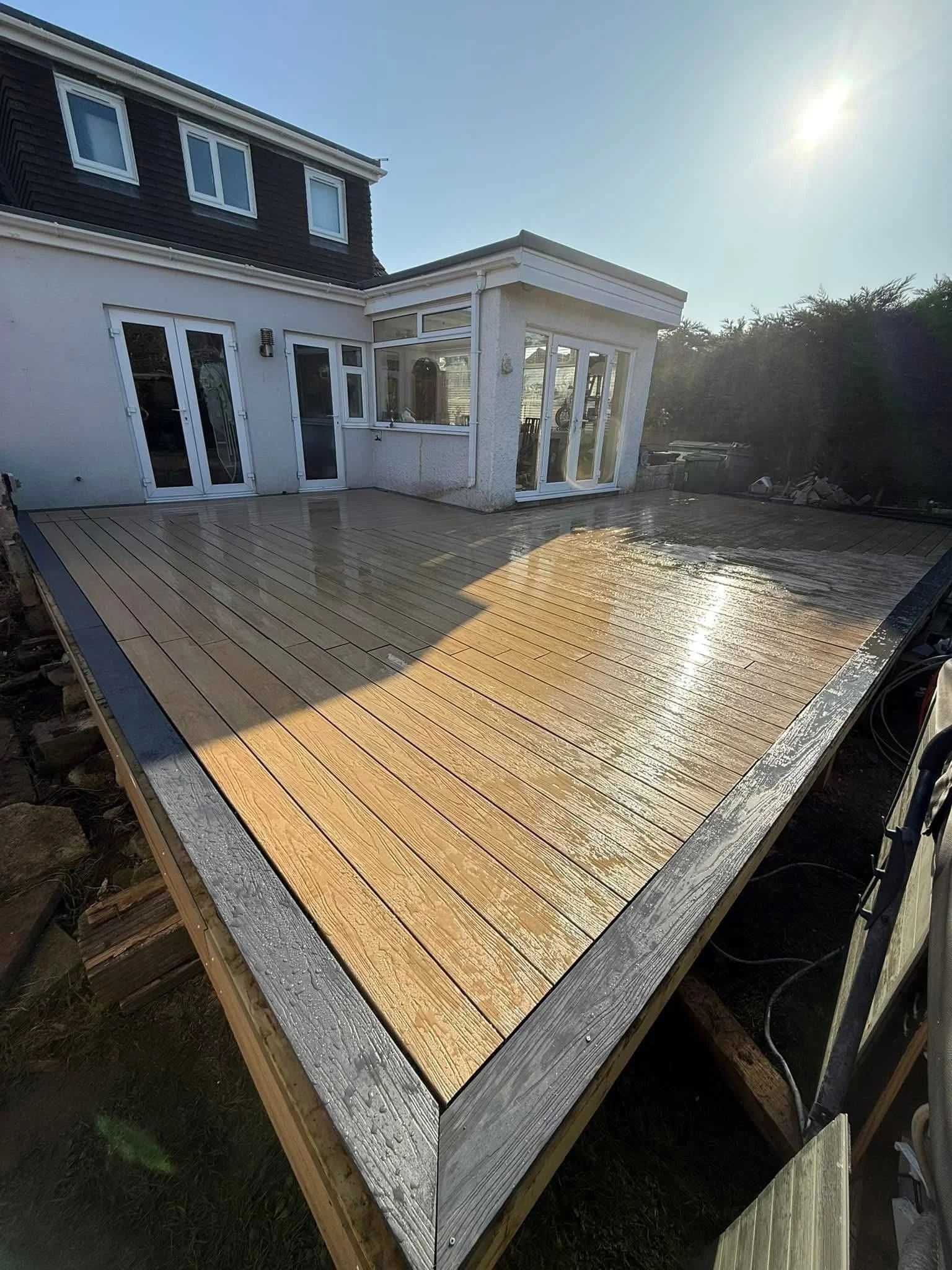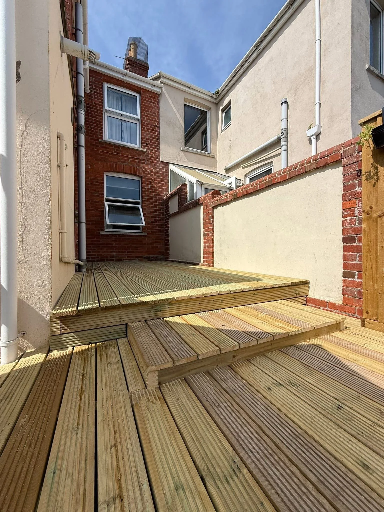 Timber decking offers natural beauty and warmth, creating an attractive, timeless outdoor space that blends seamlessly with gardens and homes. It’s durable and repairable, provides good traction underfoot, and can be finished or left to weather for low-maintenance versatility.